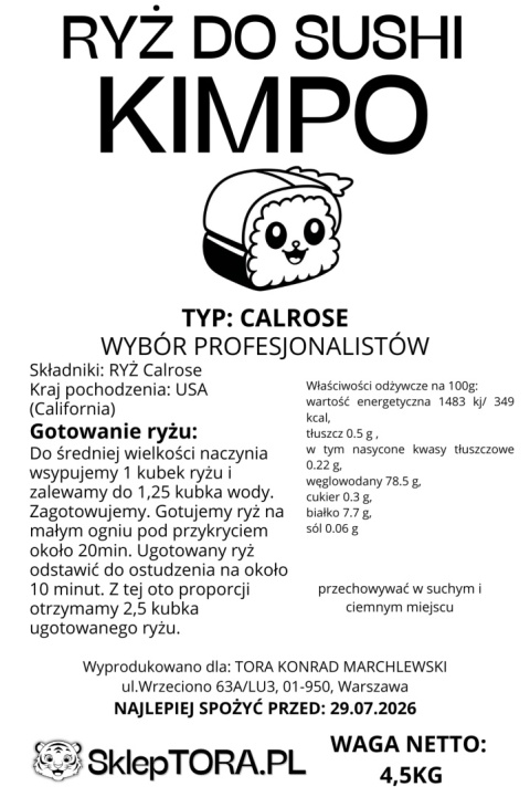 RYŻ DO SUSHI KIMPO CALROSE 4,5KG